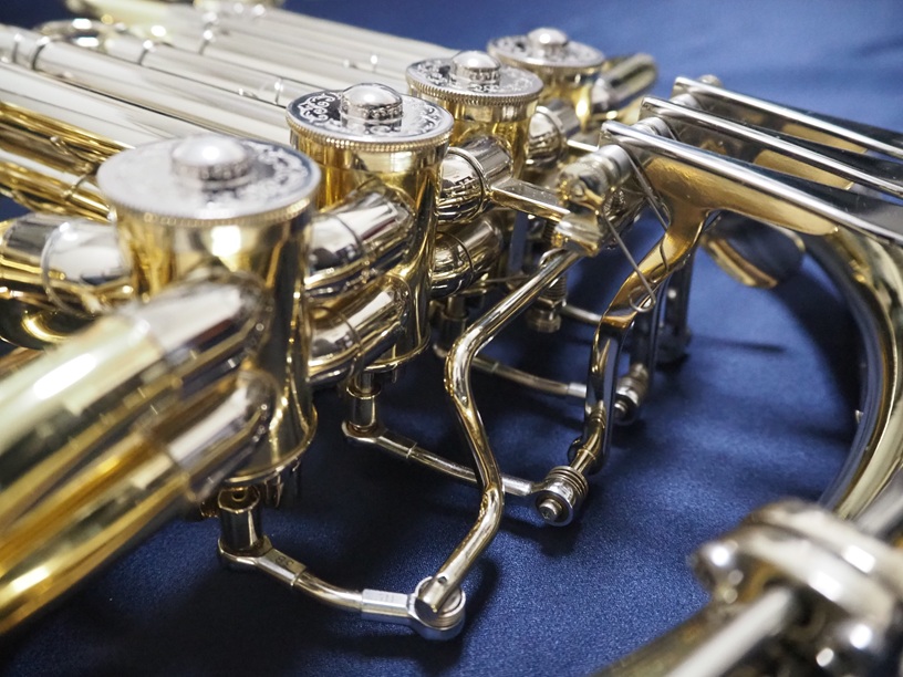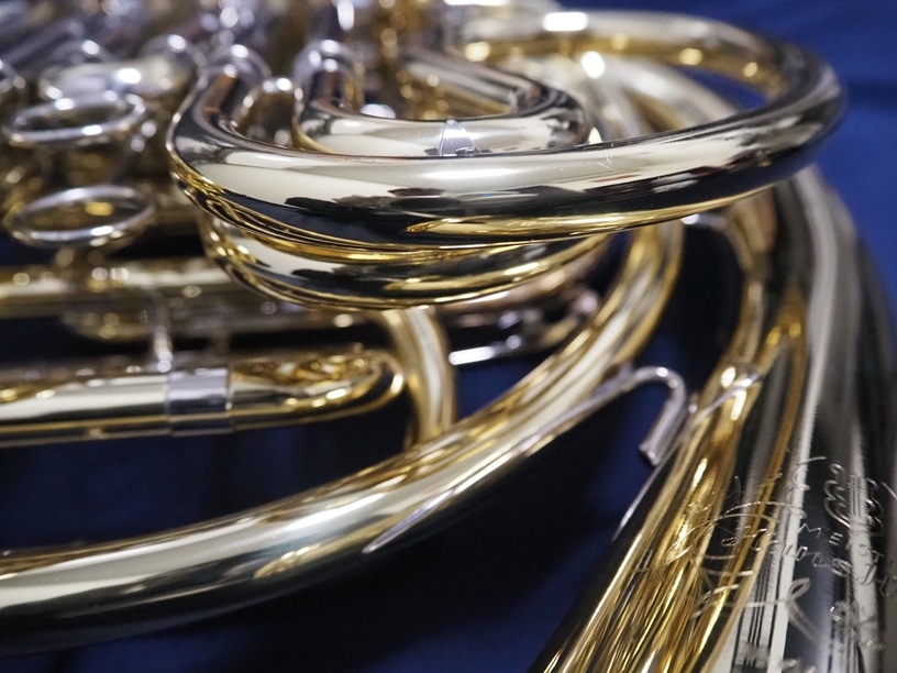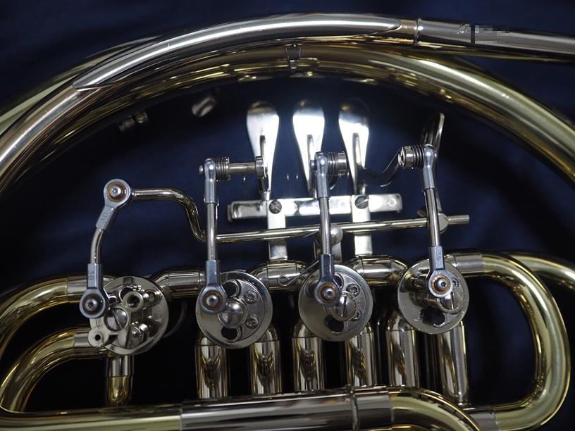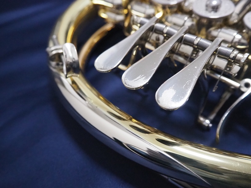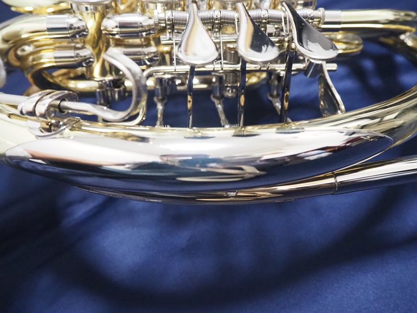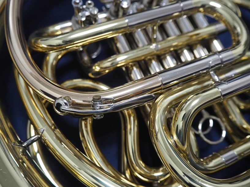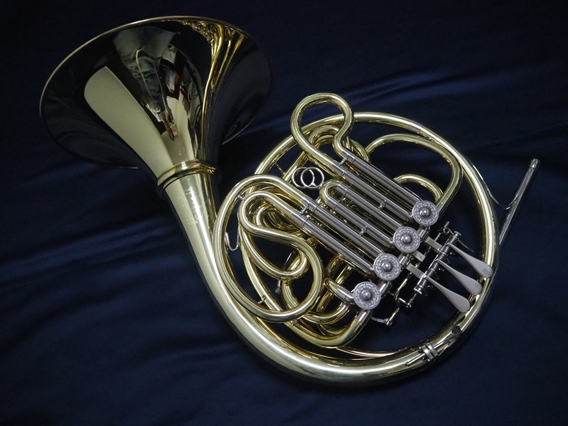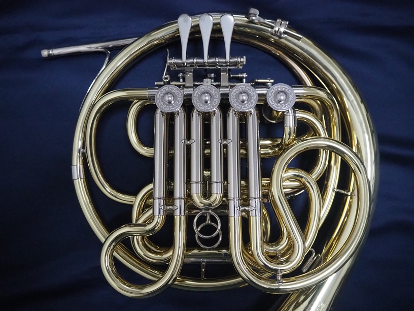 ドイツのハンスホイヤー社の主力製品であるクノッフタイプのフルダブルホルンです。吹奏楽で演奏される学生はもちろん、オーケストラやアンサンブルでも、独特の柔らかな響きが高く評価され大人気のモデルです。レバーは現行の3Bリンケージの新しい楽器です。