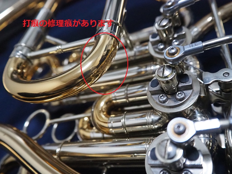 製造番号:42XXXXの比較的新しい個体です。目立つ凹みはありません。写真で分からないレベルのエクボまたはエクボの修理痕が点在しますが、ラッカーは小範囲に2か所だけ剥離がある以外は全体に荒れも少なく、かなりの美品です。
