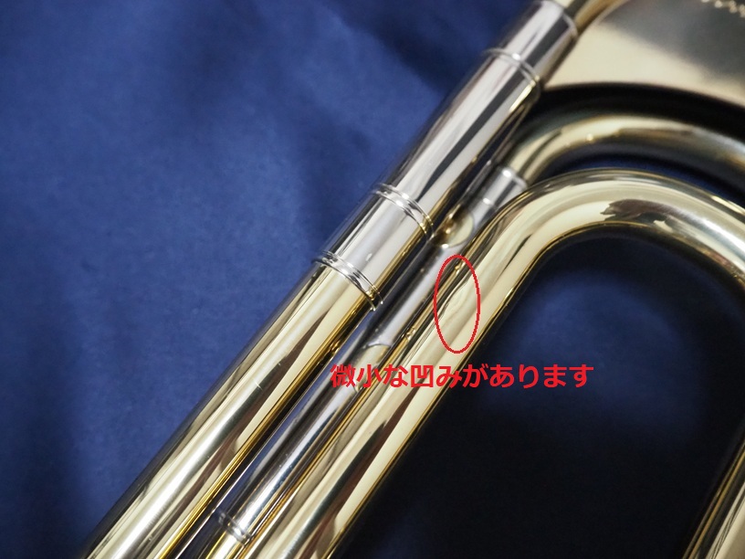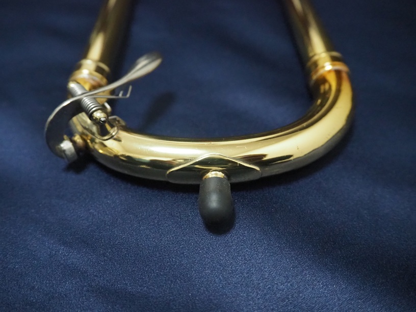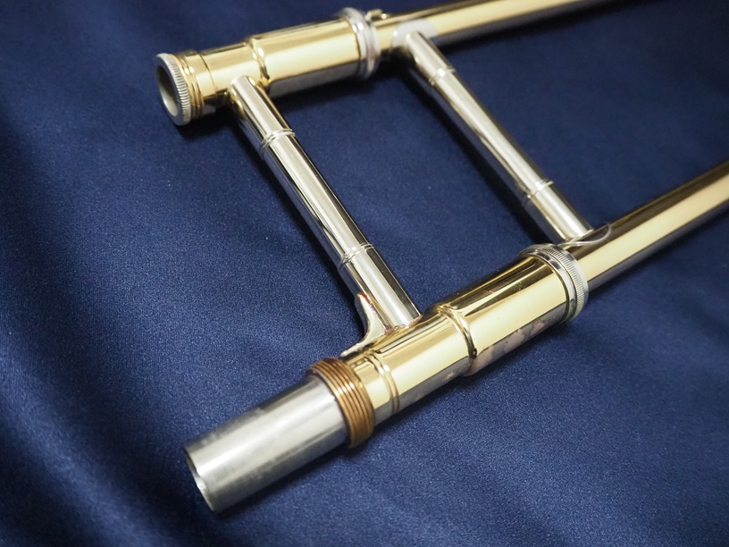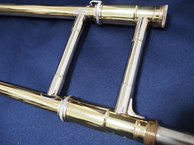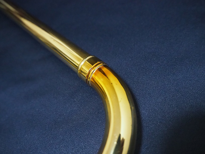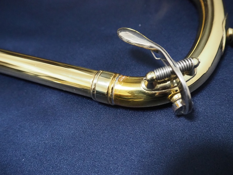 製造番号:3XXXX。支柱の台座が丸い比較的初期に生産された個体です。主管U字部やF管に1か所、ベルフレアにエクボや修理痕が点在するのと、スライドU字部の脱着によるラッカー焼けがある以外は、大きな凹みも摩耗もない美品です。当時のBam社製の純正ケースが付属します。