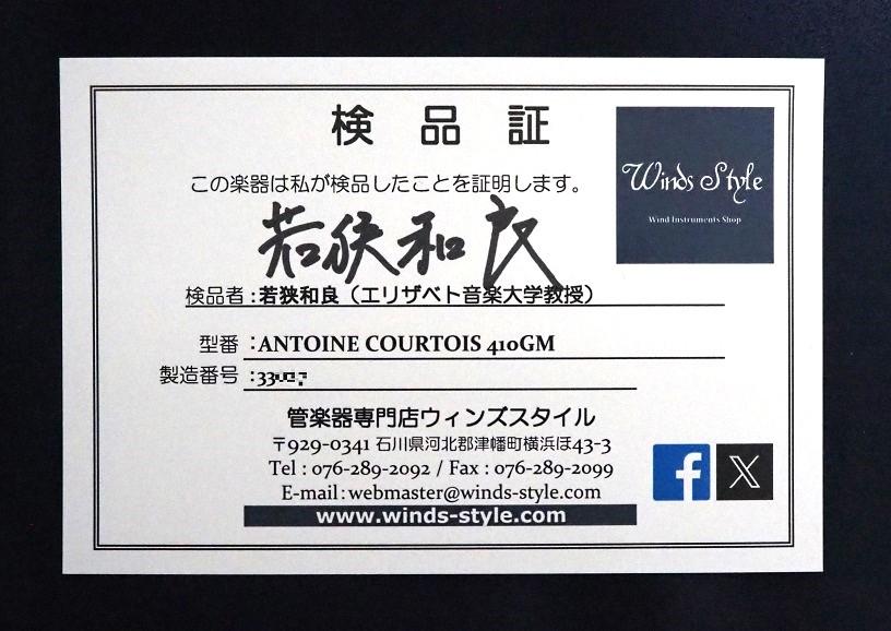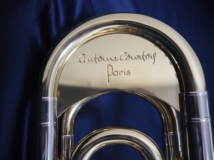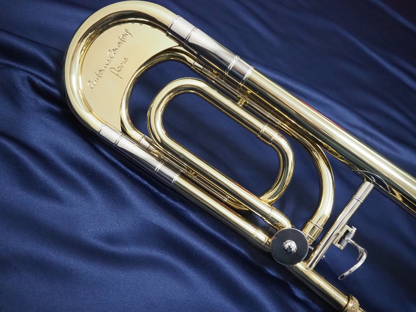 アントワンヌ・クルトワ(Antoine Courtois)は、世界で初めてテナートロンボーンに、F管のロータリーバルブシステムを装着させたブランドです。410GMはパリ・トロンボーン四重奏団などで活躍し、パリ高等音楽院の教授を務めたジル・ミリエール氏により監修されたモデルです。主管のチューニング管に装着されたヒレや、全体的にややヘビーに作られていることが特徴で、音の遠達性を重視しています。現在では生産を終了しています。
