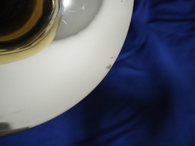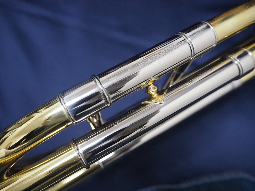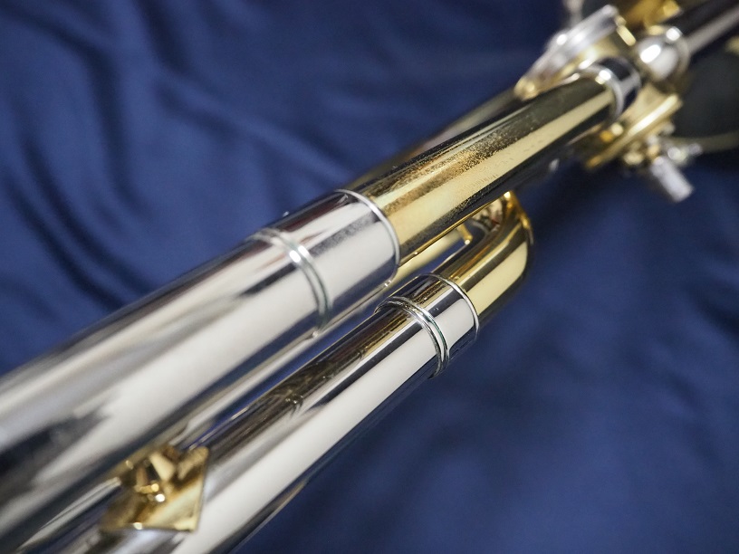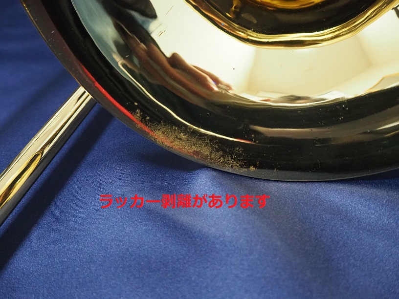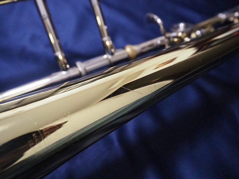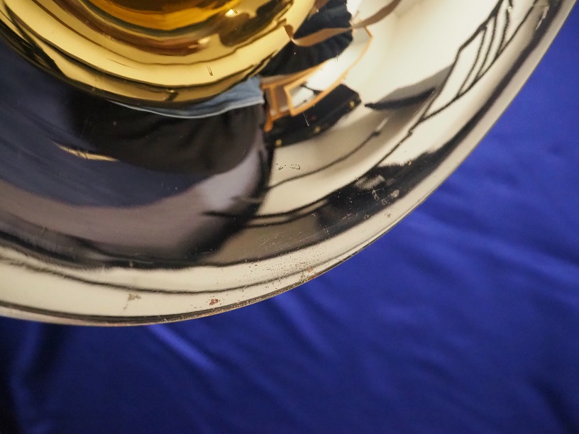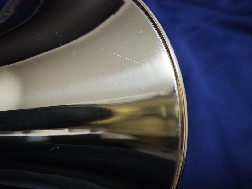 製造番号は20XXXX番の比較的新しい個体です。微小なエクボとラッカー剥離が点在し、ベルフレアにも修正痕がありますが、全体的に美品です。付属する純正ケースも外装に解れは無く、内装もとても綺麗な状態です。管体洗浄、スライド・ロータリー共に調整済みで、快適なアクションをお愉しみ頂けます。