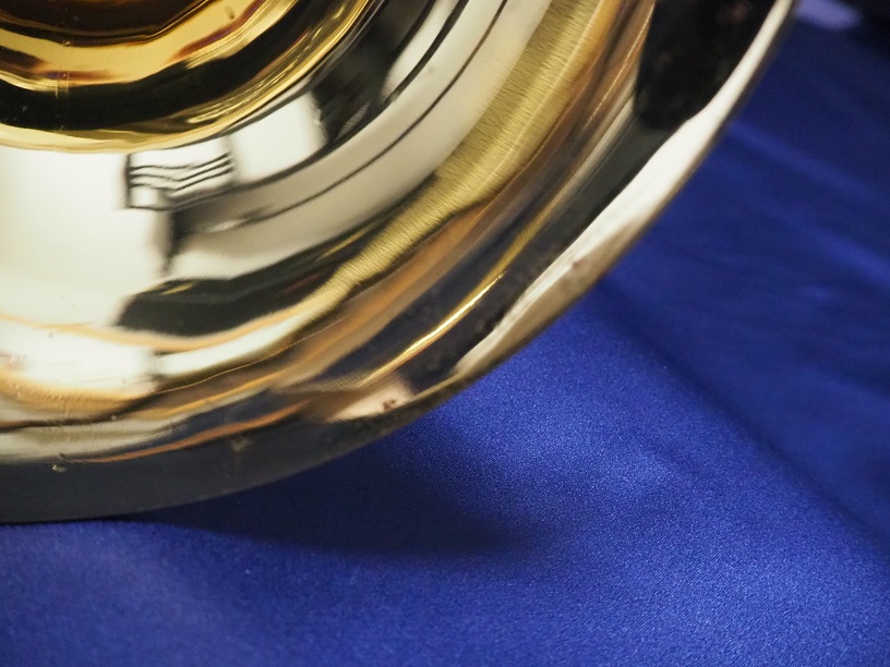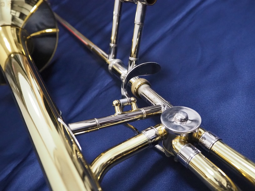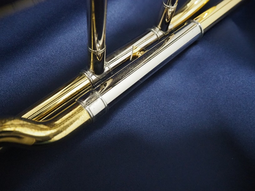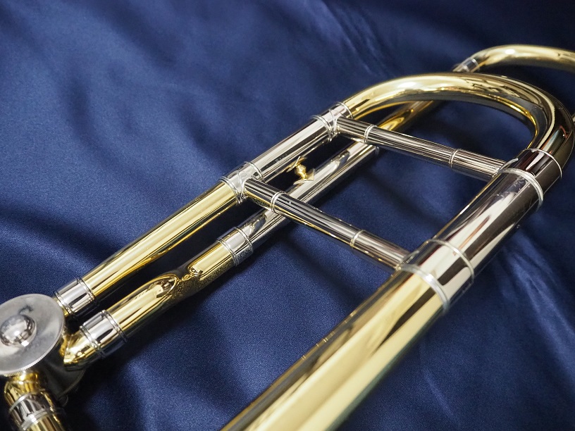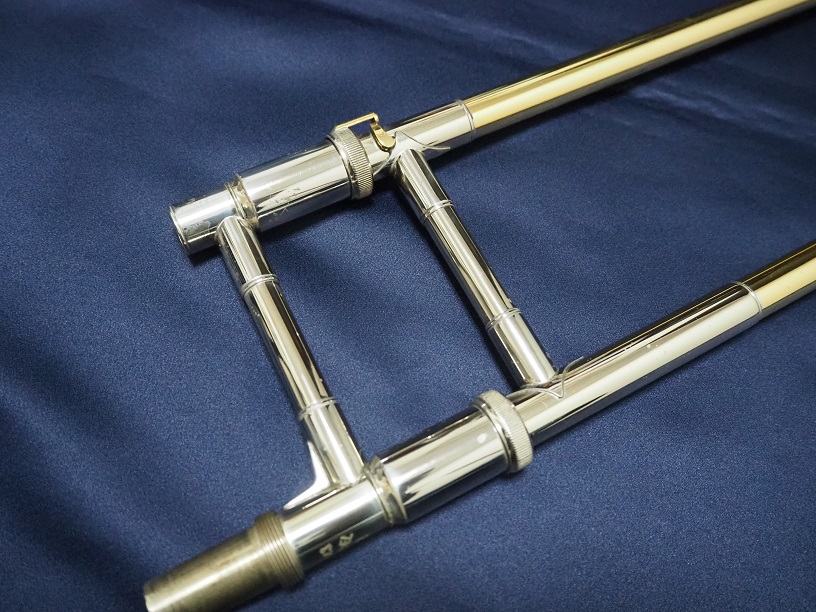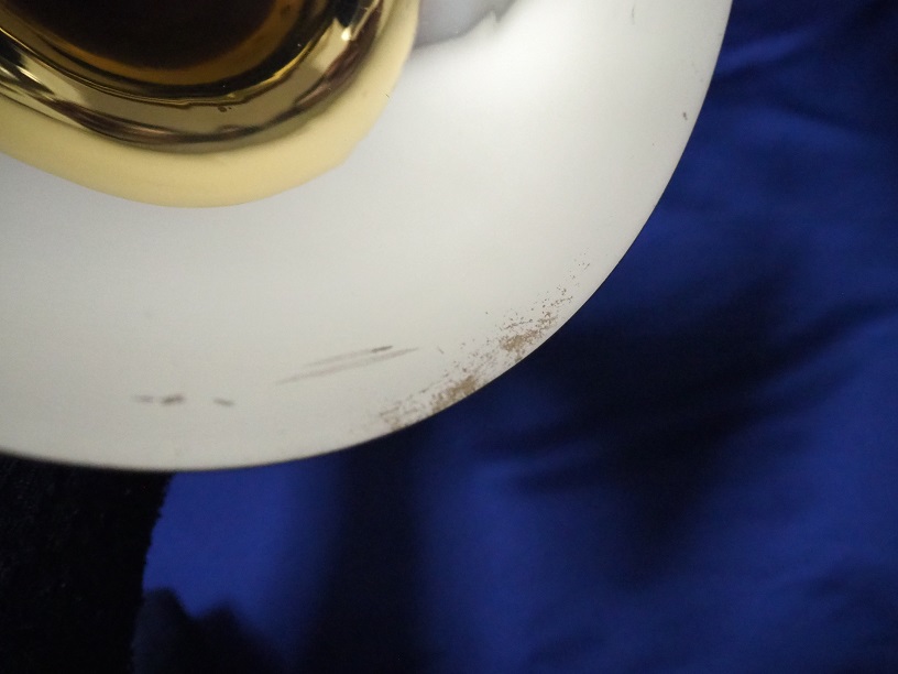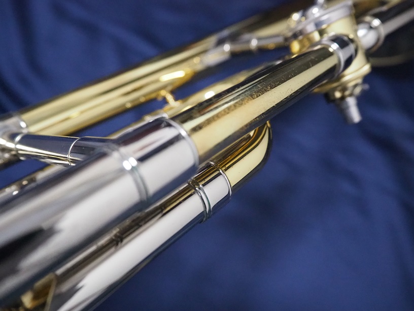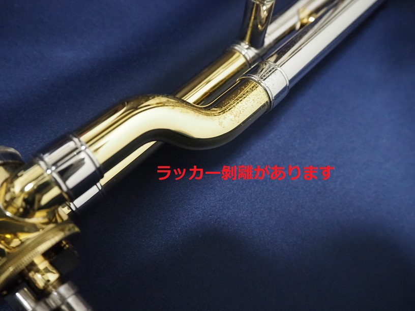 製造番号は20XXXX番の比較的新しい個体です。微小なエクボとラッカー剥離が点在し、ベルフレアにも修正痕がありますが、全体的に美品です。付属する純正ケースも外装に解れは無く、内装もとても綺麗な状態です。管体洗浄、スライド・ロータリー共に調整済みで、快適なアクションをお愉しみ頂けます。